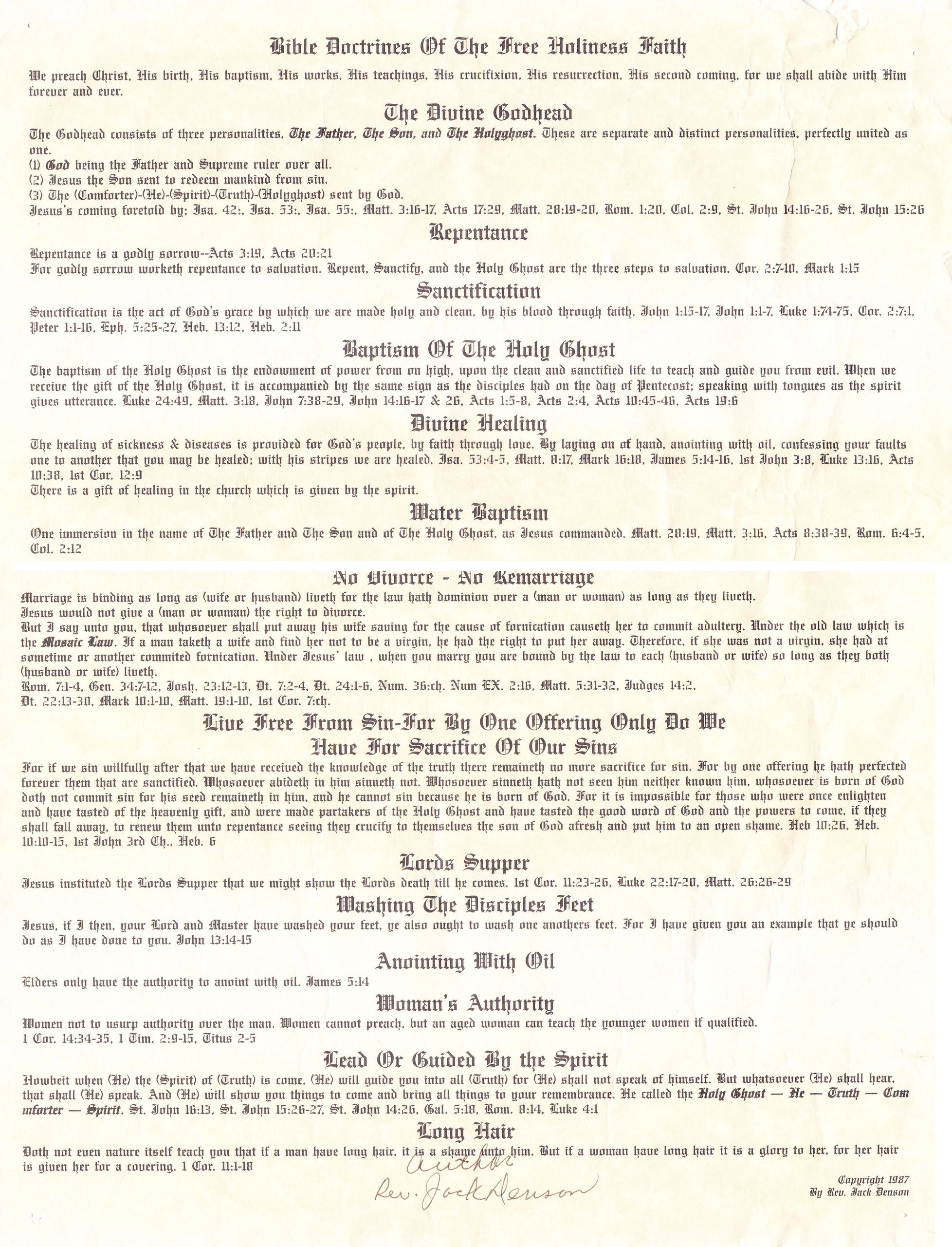Bro. Willard spent many years in northern Indiana/Illinois before returning to Madison County, Alabama, and later founding the Elkwood Free Holiness Church, where he served as pastor until his death.